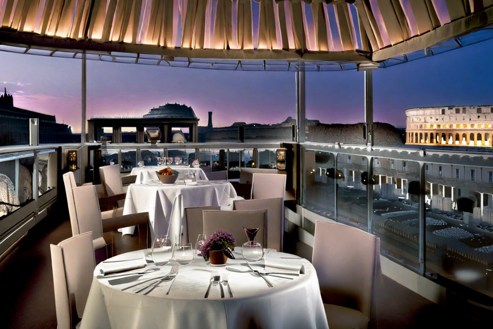 Le petit-déjeuner peut être apprécié sur la terrasse donnant sur le Colisée dans le restaurant étoilé Michelin Aroma du Palazzo Manfredi, un palais du XVIIe siècle. Un excellent petit déjeuner continental est servi ici le matin, mais nous vous recommandons de payer un supplément et de prendre la version allongée avec des fromages, des œufs brouillés, des fruits et du vin mousseux. Cela coûte un tel plaisir d'environ 30 €, ce qui est un peu cher pour le petit déjeuner, mais croyez-moi, cela est compensé par le look luxueux et l'ambiance positive avec laquelle vous commencerez la matinée à Rome après une tasse de café revigorant à Aroma.